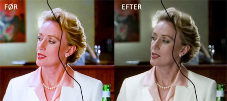 I praksis så er forskellen mellem et billede i "Dynamisk"-profilen og vores egen justerede "Film"-profil næsten som dag og nat. Herunder ses først et filmklip afspillet med "Dynamisk"-profilen aktiveret (sensoren hænger stadig på TV'et og forstyrrer lidt)