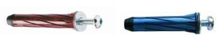 Expandet Rosett plugs til montering på hhv. 2-lags gips (rød) og 1-lags gips (blå).Monteringen af vægbeslaget