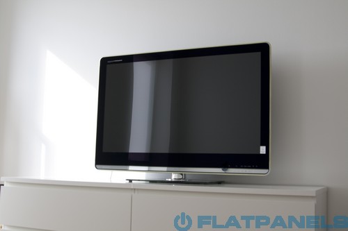 Et Sharp LED-TV der vil blive monteret på væggen.