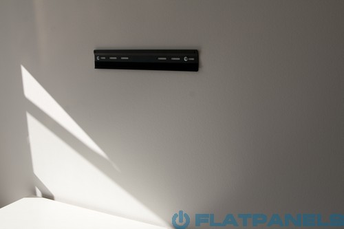 Tilbage er der egentlig kun at få hængt TV'et op på beslaget. Beslaget fungerer essentielt som en bøjle, hvor TV'et hænges ovenpå væg-delen, hvorefter tyngdekraften sørger for resten. Det pågældende beslag benyttet her har velcro monteret på de to dele, som sørger for, at beslaget ikke rykker sig til siderne når det først er hængt op. Måske ikke den mest elegante løsning, men det virker efter hensigten.