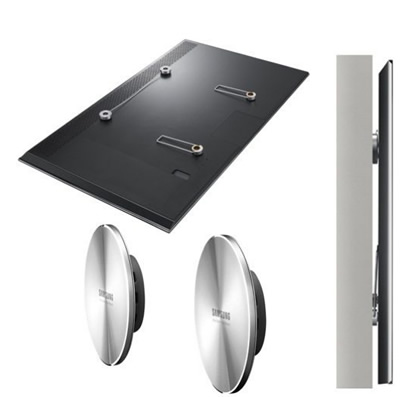 Wire-ophænget, som Samsung introducerede fungerer på samme måde som ophængning af et maleri, hvor to cirkulære fikseringsbeslag monteres på væggen og TV’et forsynes med en wire, som skal hænge hen over fikseringsbeslagene.