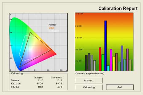 Efter kalibrering gengives farverne en del bedre. Det var ikke den letteste farvekalibrering jeg har prøvet, men det forløb alligevel uden de store problemer. Jeg vil dog gerne påpege, at udgangspunktet for skærmens farver absolut var godt – blandt det bedste jeg endnu har set på en skærm i denne prisklasse.