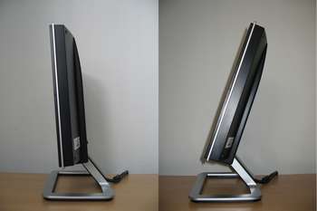Skærmens ergonomiske muligheder er tilsvarende til andre produkter i ViewSonics VX serie og derfor lettere begrænsede. Der gives kun mulighed for at tilte skærmen bagover og fremover.