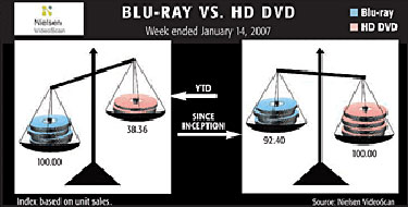 Den amerikanske brancheorganisation Videoscan har offentliggjort deres seneste analyse over salget af henholdsvis Blu-Ray (BD) og HD-DVD film på det amerikanske marked. Trenden er ikke til at tage fejl af; Blu-Ray oplever størst vækst.