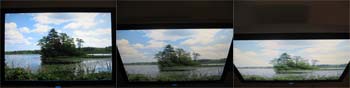 Betragtningsvinklerne er sædvanligvis gode på VA panelerne, og panelet i Belinea 102035W er ingen undtagelse. Der er plads til små forbedringer, men i praksis ser man kun ændringer fra rimelig store vinkler. Jeg har taget et billede af betragtningsvinklerne herunder: