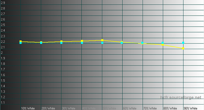 I vores version af firmwaren var der blevet mulighed for helt at slukke for den dynamiske kontrast, hvilket gav anledning til helt at glatte gamma-kurven ud. Hvis man vil have den dynamiske kontrast til at sørge for, at eks. de sorte bjælker på 2.35:1 materiale vises helt kulsort, så skal man sætte "kontrastforstærkning" til 6 og skrue “Backlight” tilbage til standard-værdien på 32. Der tabes ikke voldsomt meget ved at gøre dette i form af black og white crush, så det kan godt forsvares ikke at slukke helt for det.