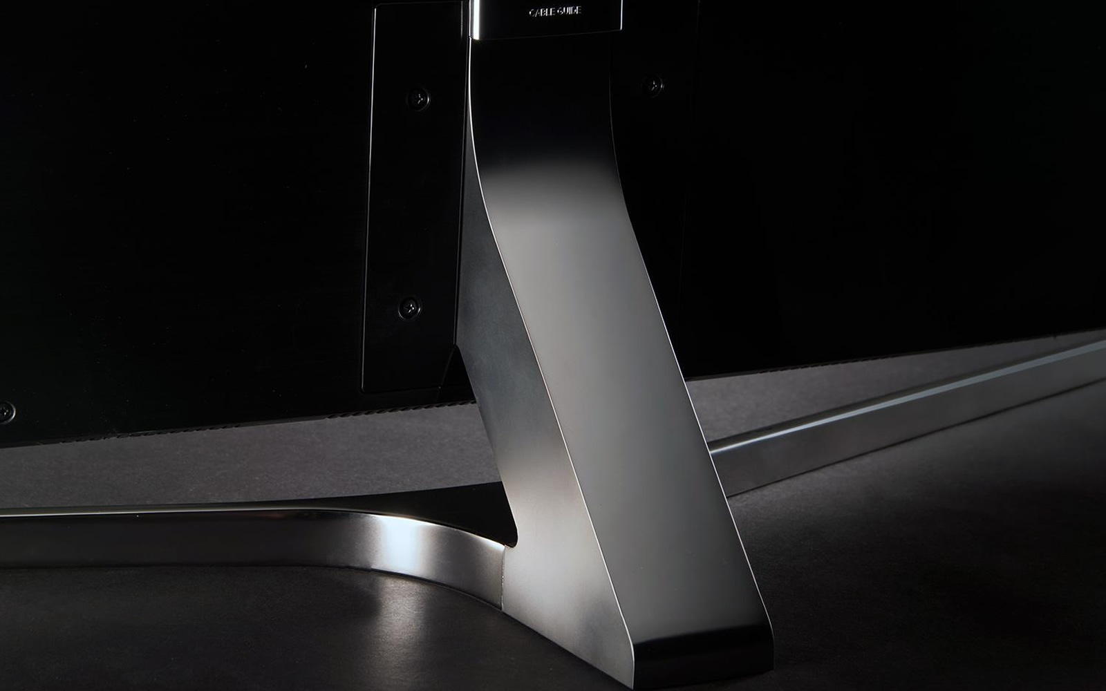 Foden på TV’et er blankt metal og er fæstnet på midten af skærmen, hvor den del der går fra base til monteringshuller på skærmen er dækket med blankt plastic. Da JS9505 er en tung dame, så vil man kunne vippe med den på foden, hvilket er uundgåeligt når den kun har et enkelt støttepunkt.