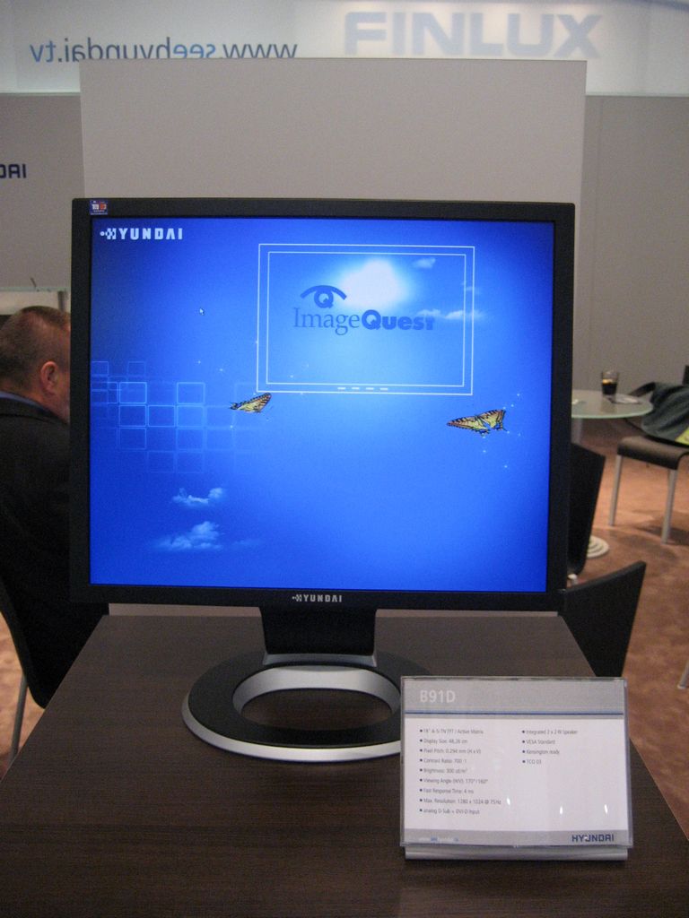 Hyundai er endnu ikke en af de store på skærmmarkedet, men de er begynd at introducere flere interessante LCD monitors og LCD-TV på det sidste. Jeg kiggede kort forbi deres stand for at se om jeg kunne finde nogle af deres nye monitors.