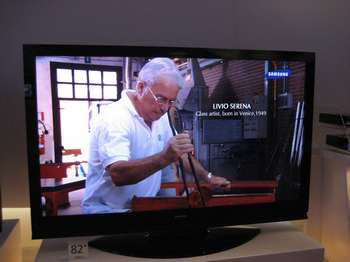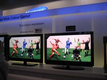 Samsung har også for kort tid siden lanceret den nye Q7 serie af plasmamodeller. Den blev naturligvis også vist frem. Det var lidt svært at få et helt optimalt billede af den pga. genskæret i panelet.