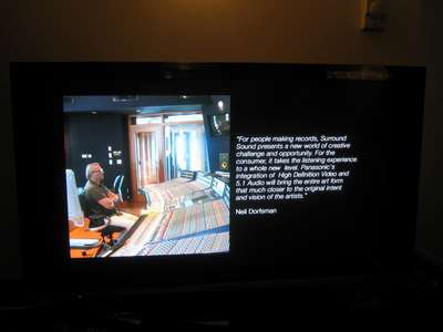 Panasonic havde i samme rum en præsentation mellem et af deres 32 tommer LCD-TV og en større plasma skærm. Begge var tilsluttet Panasonics Blu-Ray afspiller; LCD-TV’et med komponent, Plasma Tv’et med HDMI. Signalet der blev sendt var det samme og i samme opløsning.
