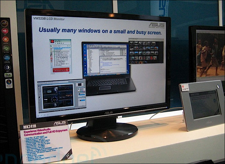 Samsung var klart stærkest repræsenteret og de viste nyheder i form af nye monitors i krystaldesign, en 31” OLED prototype, en 22” skærm med S-PVA panel og deres nye 2-i-1 skærm.