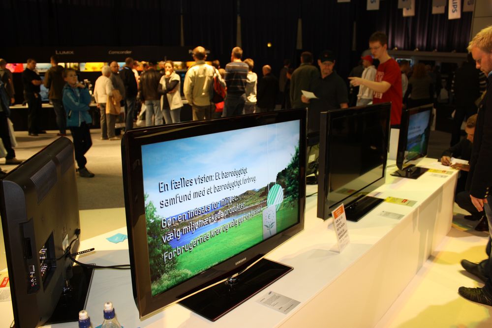 Vi løb derefter videre hen imod Samsungs LED-TV, som standen i høj grad fokuserede på. Det strømbesparende og ultra slanke LED-TV modeller var blikfanget og folk var generelt begejstrede for modellerne, der både var udstillet på standere og ophæng.