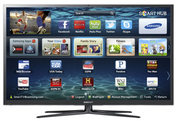 I 2012 bliver Smart TV den helt store satsning fra Samsung. Det skal først og fremmest ske med en ny og opdateret Smart TV-platform, der angiveligt er hurtigere og mere brugervenlig – specielt i de modeller med dual-core processor. Af nyheder findes eksempelvis Fitness-sektionen, der hjælper dig i form med fitness-programmer, statistik og meget mere. Fitness-appen er også koblet op til kameraet i Tv’et. Det nye Kids-univers byder på underholdning til de mindste, og Family Story giver adgang til familiens billeder, der kan lægges op i ”skyen”, hvor Samsung stiller 5 GB til rådighed.