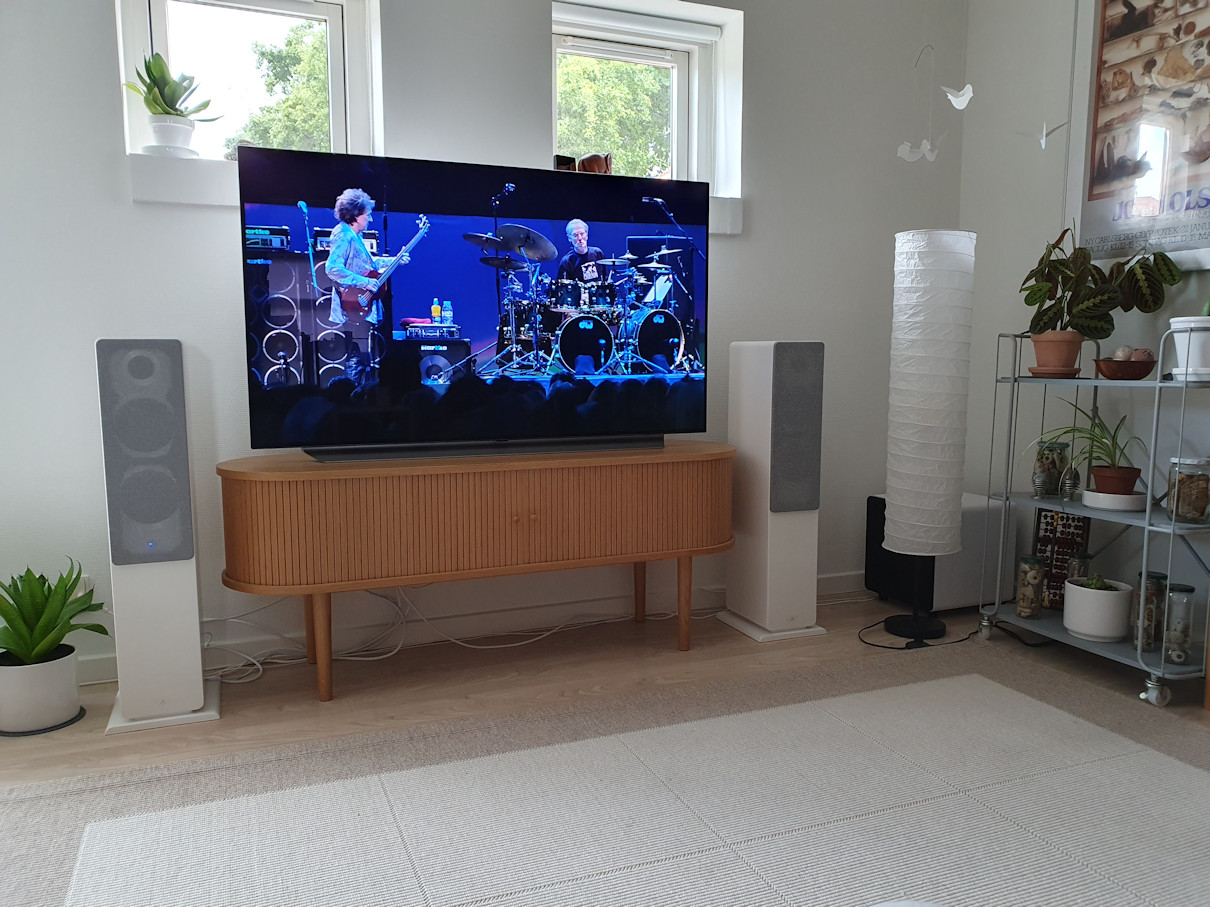 Hej Bendix. Tak for at du ville dele din erfaring med Beosound Stage. Den var også i mine første overvejelser om et lydsystem. Desværre er den jo 7,7 cm høj når den ligger ned. Der er kun 35 mm op til skærmkanten på en LG C1 og så er der vel ca. 5 mm sort kant på skærmbillede før det endelige billede. Så jeg valgte den fra af fysiske årsager denne gang. Måske den er noget for min frue hvis hun også vil have et lydsystem på TV no.2. Der vil den passe perfekt i opsætningen.