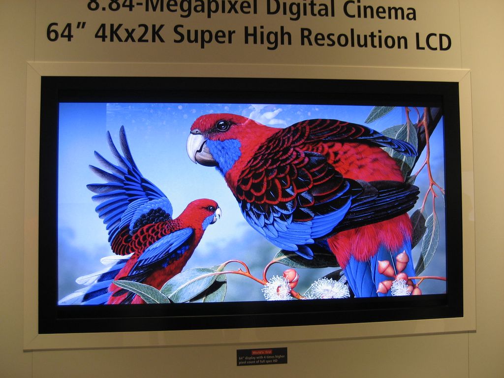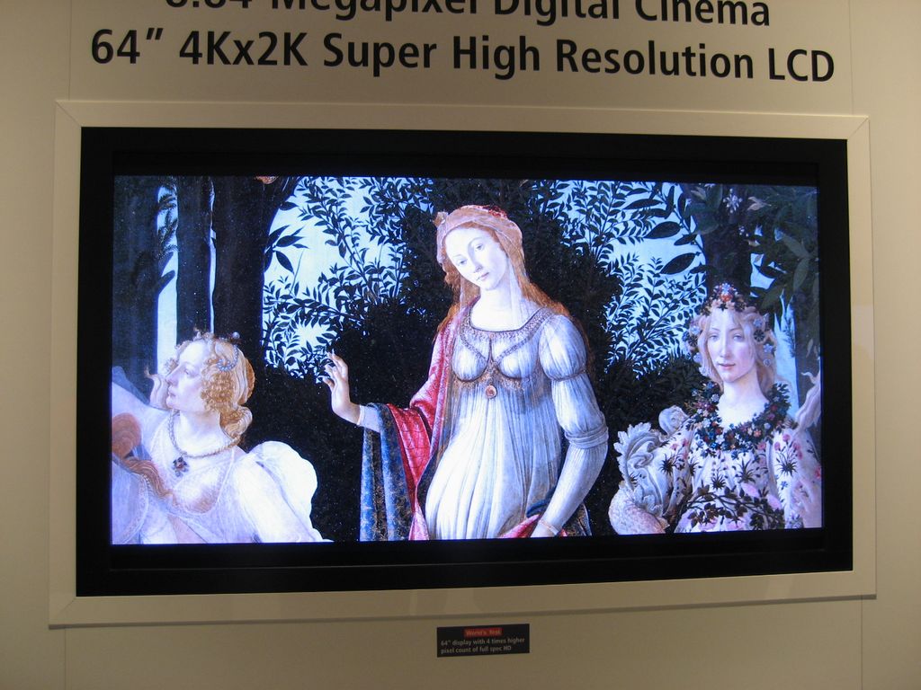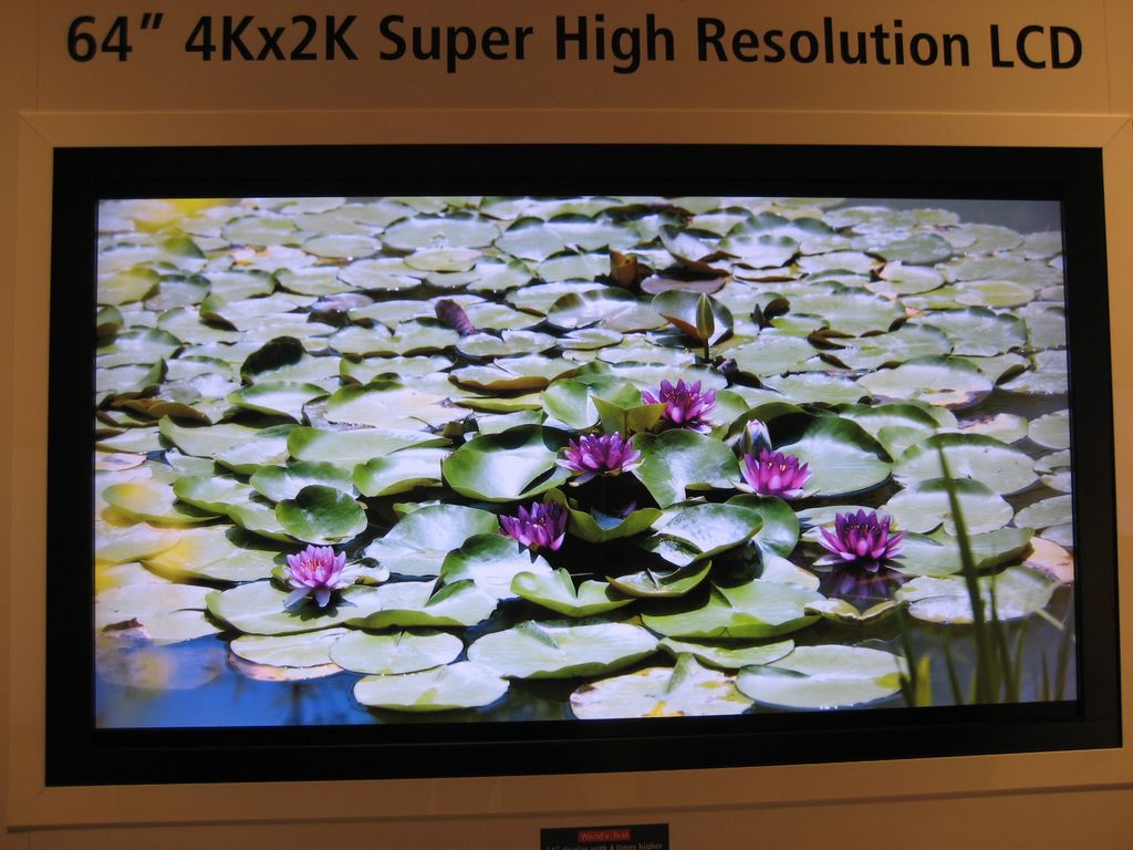 En anden imponerende ting på Sharp messestand var deres panel med 4 gange så høj opløsning som 1920x1080. Opløsningen var som Sharp selv angav den 4Kx2K, men hvis man skal være helt præcis er den 4096x2160. Skærmen var 64 tommer stor.