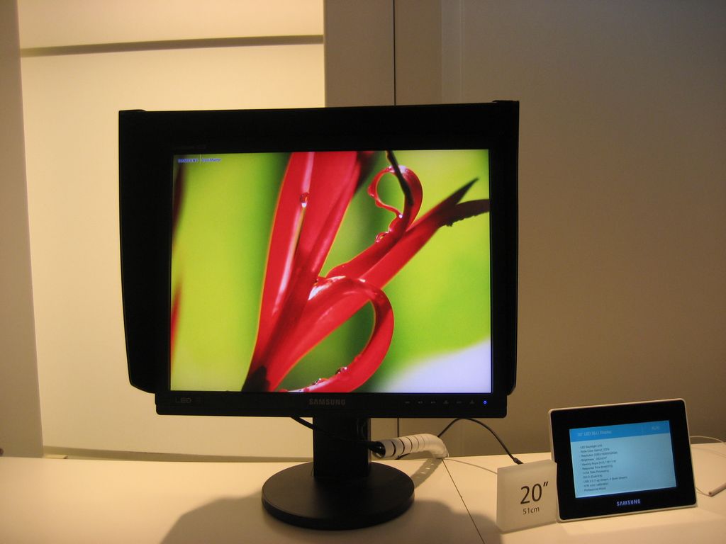 Herover ser du 20 tommer versionen, som hedder XL20. På messen sagde Samsung, at man har udvidet farveunderstøttelsen til 123 %, men ikke i forhold til hvad. I tidligere pressemeddelelser har Samsung nemlig nævnt 114 % af NTSC spektret.