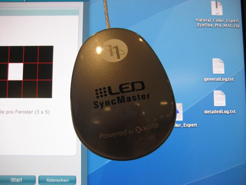 Begge modeller kan desuden fås med en ”hood”, altså en afskærmning, som skal forhindre, at lys generer og ændrer billedgengivelsen. En kalibrator er også med i pakken, som kan give brugeren mulighed for at kalibrere skærmen for optimal ydelse. Den ses herunder.