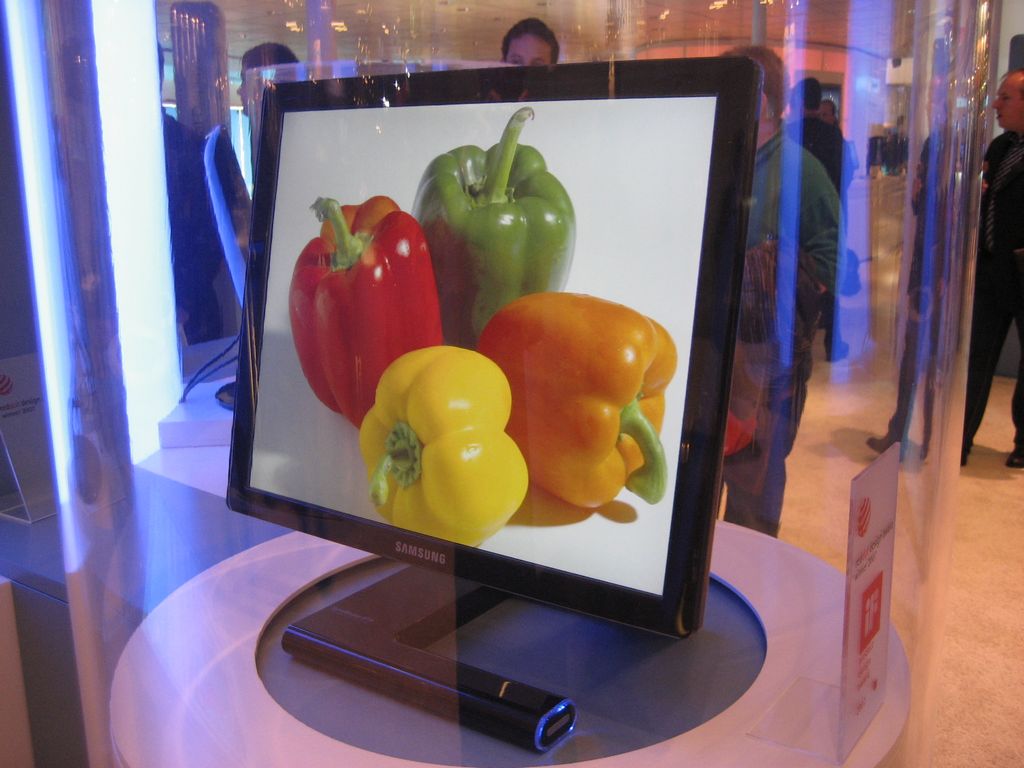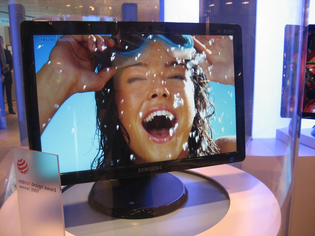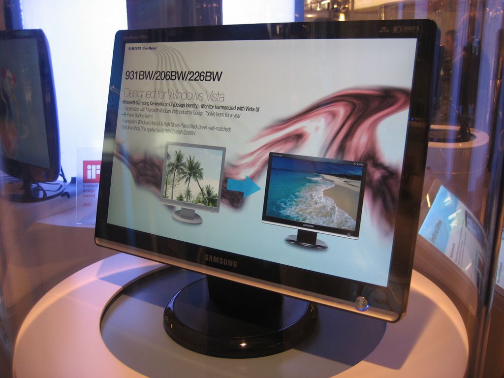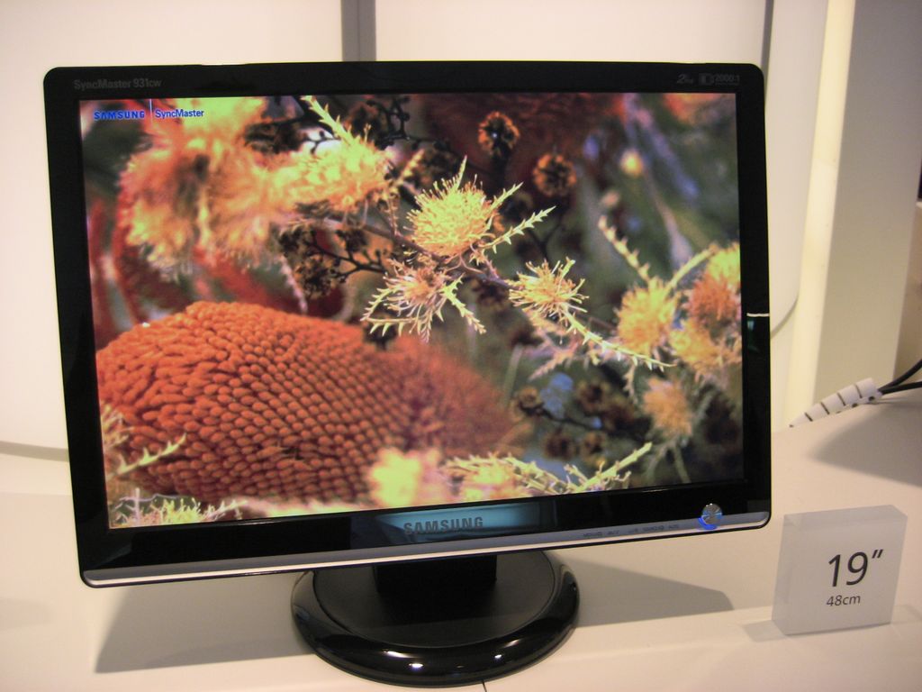 Den næste skærm jeg så var en 19 tommer widescreen skærm fra Samsung kaldet 931cw. Designmæssigt svarer den til 931bw, som allerede sælges herhjemme, men 931cw er angiveligt en version med udvidet farvespektrumunderstøttelse på 90 % af NTSC mod 72 % for almindelige LCD monitors.