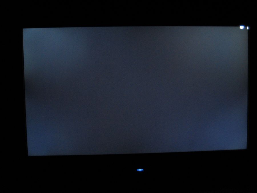Skærmen har lidt problemer med lyshomogeniteten. Altså ensartetheden af lyset der fordeles på skærmen. Se et billede herunder: