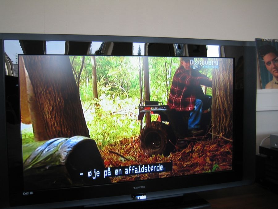 Skærmen har også en indbygget DVB-T tuner, som er let at sætte op og navigere i. En elektronisk program guide kan hives frem med en knap på fjernbetjeningens top. Undertekster kan slås fra og til efter behag, og jeg har som sådan ikke noget at sætte fingeren på. DVB-T tuneren fungerer efter hensigten, og giver et billede der er en del bedre end den analoge del – specielt hvis dine antenneforhold ikke er optimale.