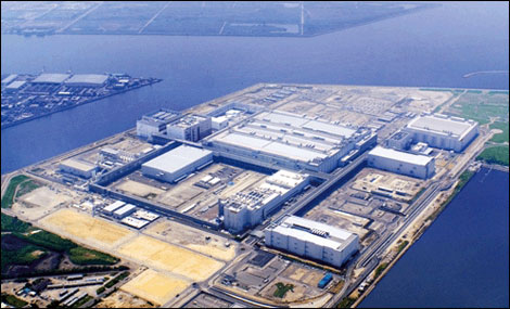 Sharps nye 10G Sakai LCD fabrik under opførsel. Bygningen i midten er 10G LCD fabrikken