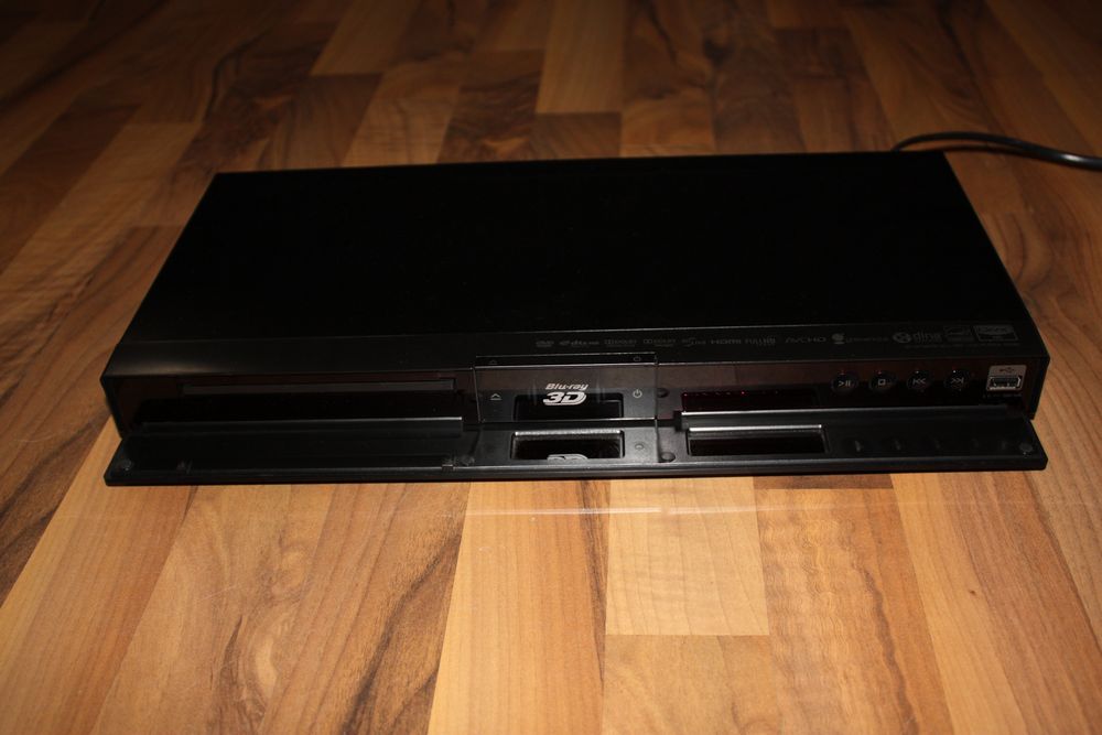 Fronten kan åbnes, når der skal isættes en Blu-ray skive eller hvis der skal tilsluttes en USB harddisk eller en USB nøgle. Afspillleren understøtter i øvrigt DivX på USB porten.