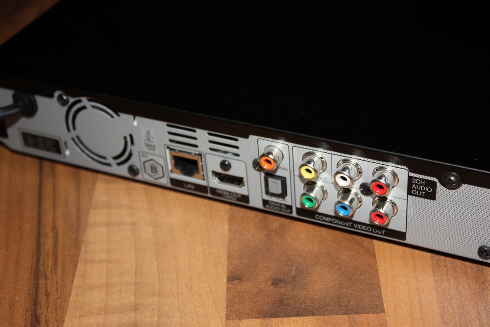 På bagsiden finder man 1 HDMI udgang, samt en LAN-port, en optisk lydudgang, en koaksial lydudgang samt analoge video og lydindgange. Afspilleren har trådløst Wi-Fi indbygget, så derfor behøver man ikke tilslutte en ekstra Wi-Fi USB enhed.