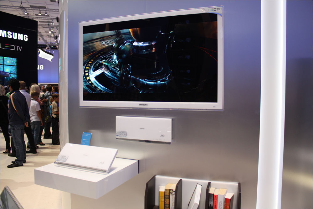På IFA præsenterede Samsung deres lsøning af hvide produkter. Fladskærmen har været på markedet lidt tid nu, men Blu-ray afspilleren der både kan hænge på væggen og stå, er ny. På den måde giver Samsung mulighed et alternativ til det dominerende sorte højglans-look.FlatpanelsDK følger i disse dage (1-10. september) verdens største forbrugerelektronikmesse IFA 2010 direkte fra Berlin. Læs om alle nylanceringerne og trends fra IFA 2010 på forsiden eller på vores IFA 2010 Tema side. Tilmeld dig også vores Nyhedsbrev eller RSS feeds.