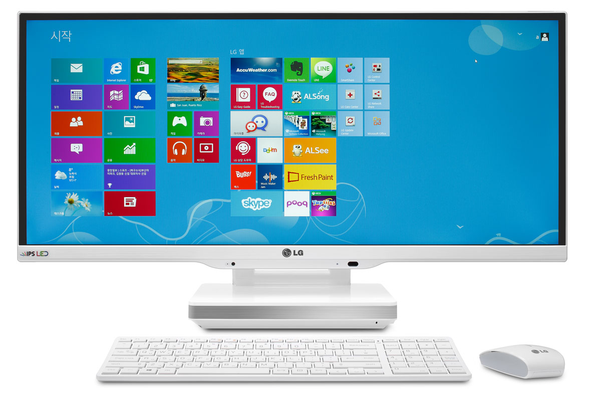 Endelig frigiver LG en alt-i-én PC baseret på samme 29-tommer 21:9-formats skærm. PC’en kaldes V960 og kører Windows 8. Den sælges også med tastatur og mus og kommer i hvidt design.