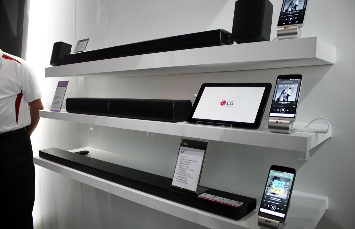 - “Derudover kan LG annoncere tre nye produkter i midtersegmentet, herunder SJ4 på 300 watt, SJ5 på 320 watt, SJ5Y på 420 watt med trådløse baghøjtalere samt SJ6 med Google Cast på 320 watt. Alle modellerne har 4K-lyd. I entry-level segmentet findes desuden tre forskellige modeller: SJ1 med Bluetooth, optisk tilslutning og et output på 40 watt; den kompakte SJ2 med trådløs basisenhed, Bluetooth og et output på 160 watt; samt SJ3, der også har Bluetooth og trådløs basisenhed og et output på hele 300 watt.”