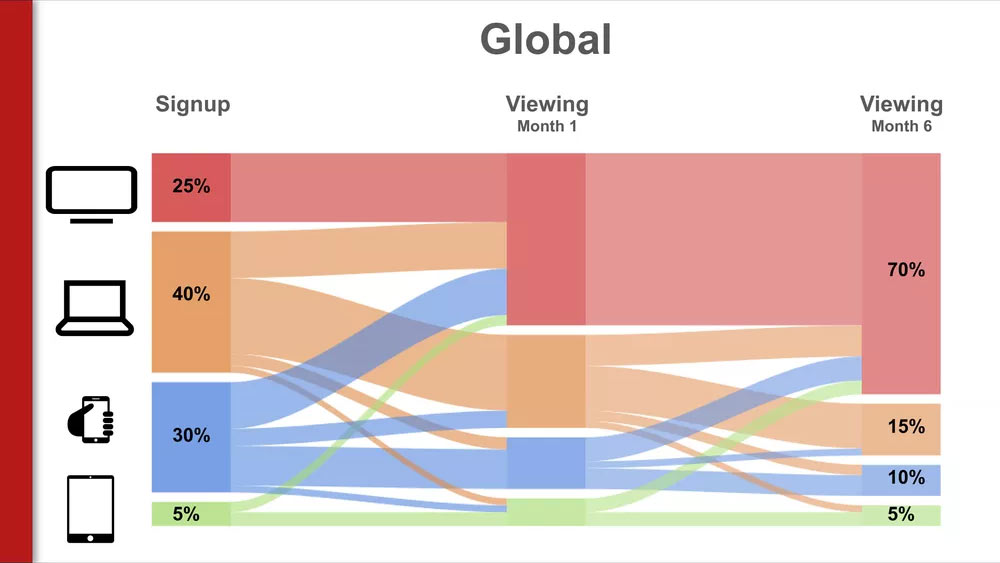 Netflix har en app til nærmest enhver tænkelig enhed, men 70% af al streaming fra tjenesten sker på en tv-skærm, oplyser selskabet overfor mediet Recode. Selv brugere, der tegner abonnement fra håndholdte enheder, søger over tid mod tv’et.