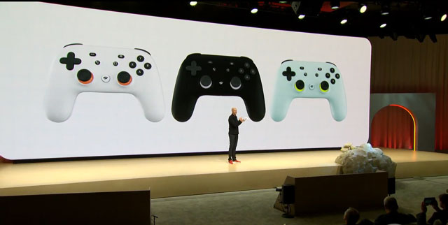Google havde også medbragt en spil controller, som de kalder Stadia Controller, der automatisk forbinder til den enhed, som man benytter. Controlleren har en knap til at dele gameplay på YouTube samt indbygget mikrofon til Google Assistant. Google forestiller sig, at man ved at åbne Assistant API'en til spiludviklere, kan bygge lag ovenpå traditionel spilstyring.