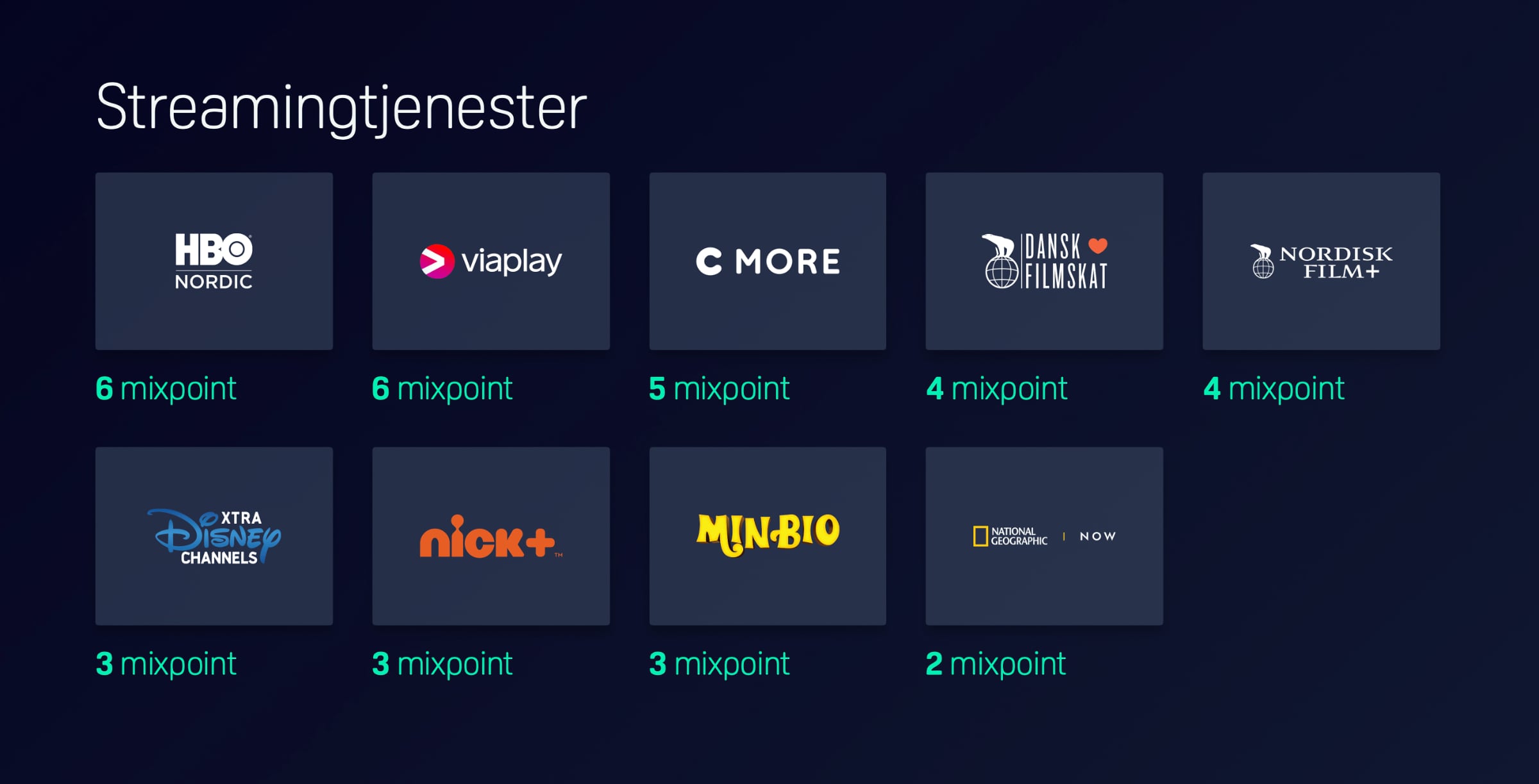 Foruden lanceringspartnere som HBO Nordic, C More og Dansk Filmskat, så kan kunder nu tilvælge Viaplay. Tjenesten koster 6 'mixpoint', så man skal minimum have Mix10-pakken til 199 kr/md. hos YouTv.
