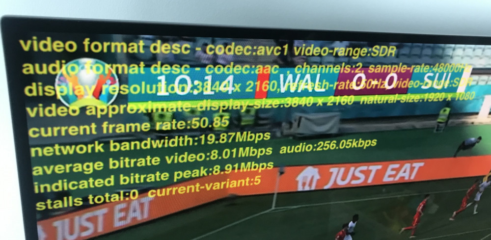 Det står ikke klart, om 1080p50 signalet kommer igennem på alle TV-platforme. Flatpanels har foreløbigt kunnet bekræfte, at det er tilfældet på DRTV til Apple TV. Målingen kan ses til højre.