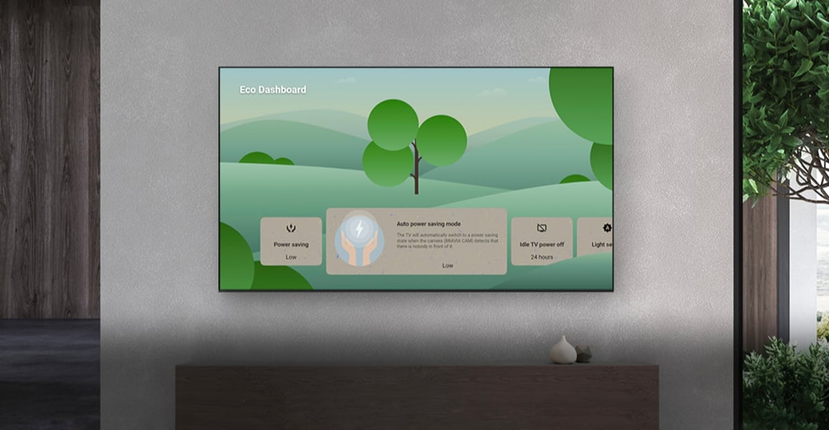 Eco Dashboard kan styre strømbesparelse, lyssensor, TV-lysstyrke mv. Eco Dashboard har også integration med Sonys Bravia-kamera, der kan tilkøbes og bruges med Sony TV fra 2022 og frem.