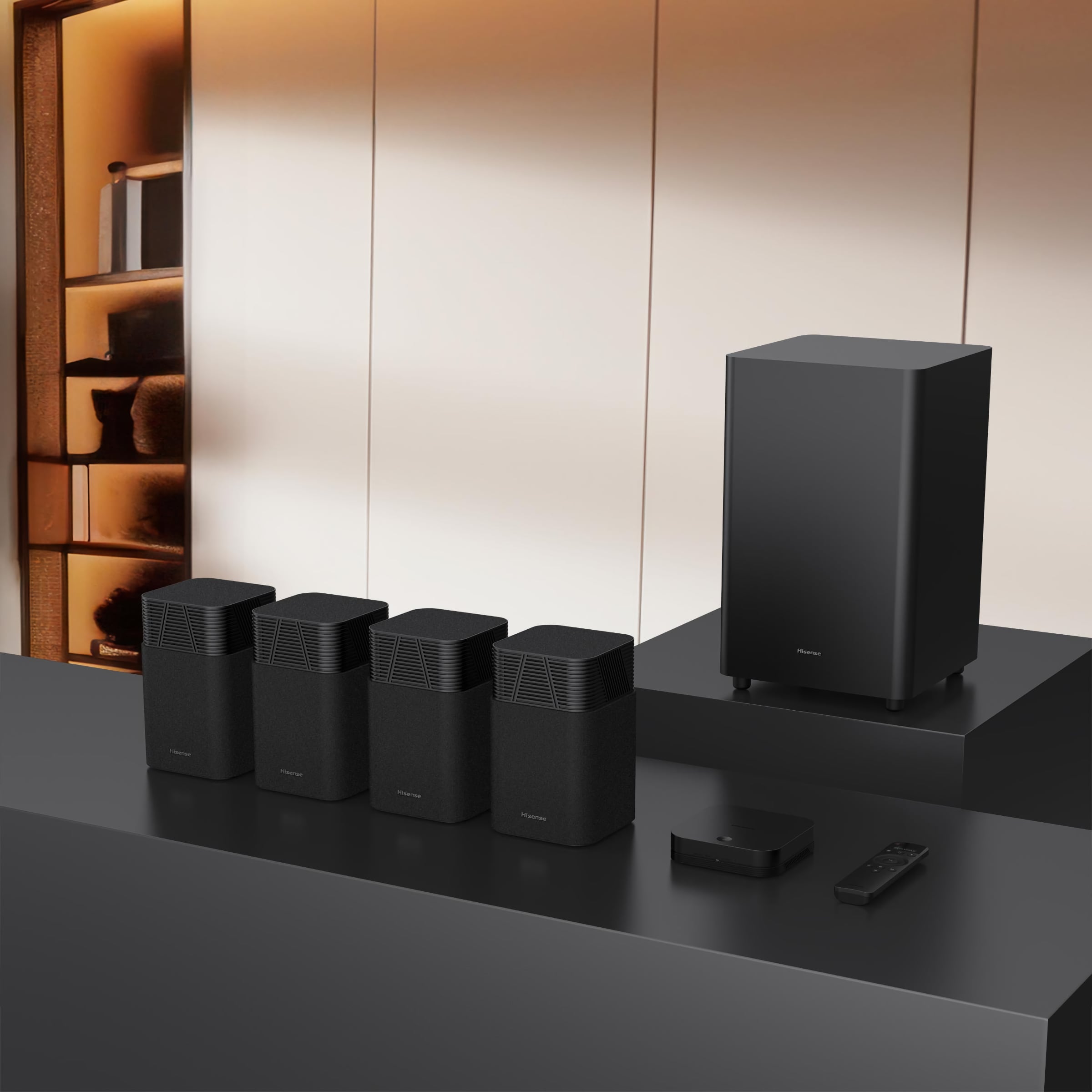 - "Højttalerne kan forbindes trådløst, og alle de nyeste teknologier er integreret: fra Dolby Atmos til DTS:X og Pure Surround-teknologi. Med dens 720W Max Audio-effekt vil den give dig oplevelsen af at være midt i handlingen i din yndlingsfilm eller foran scenen med din favoritmusiker – bortset fra, at du sidder komfortabelt i dit eget hjem," lød det fra Hisense.
