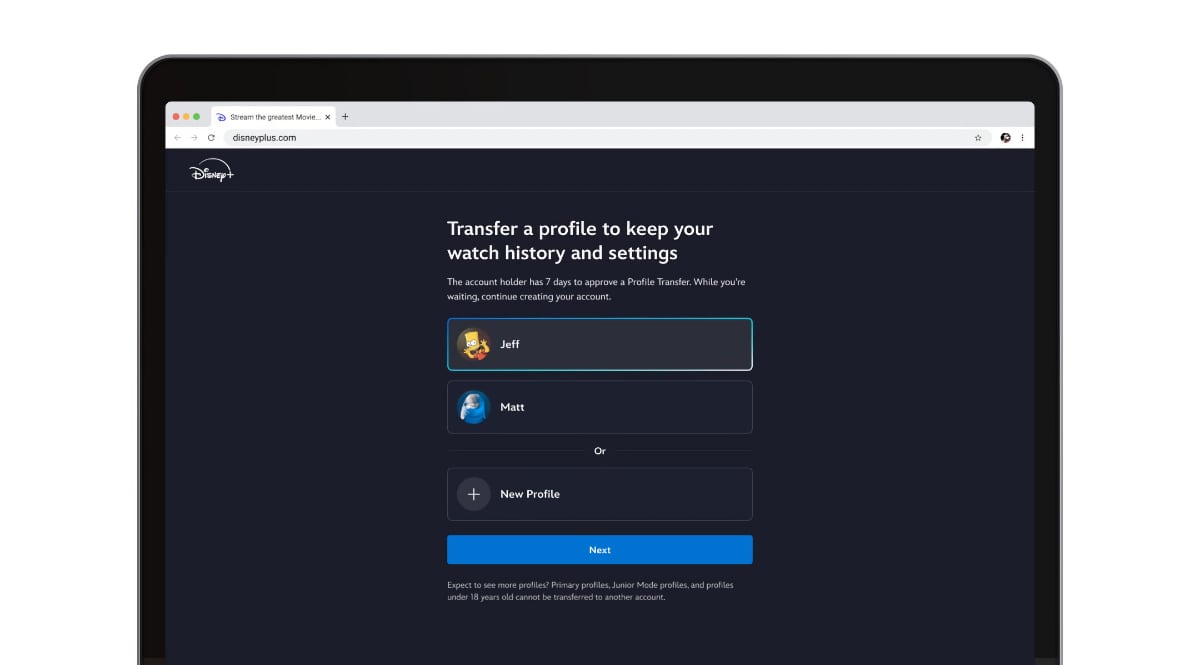 Det er med visse profiler muligt at overføre historik og indstillinger. Foto: Disney