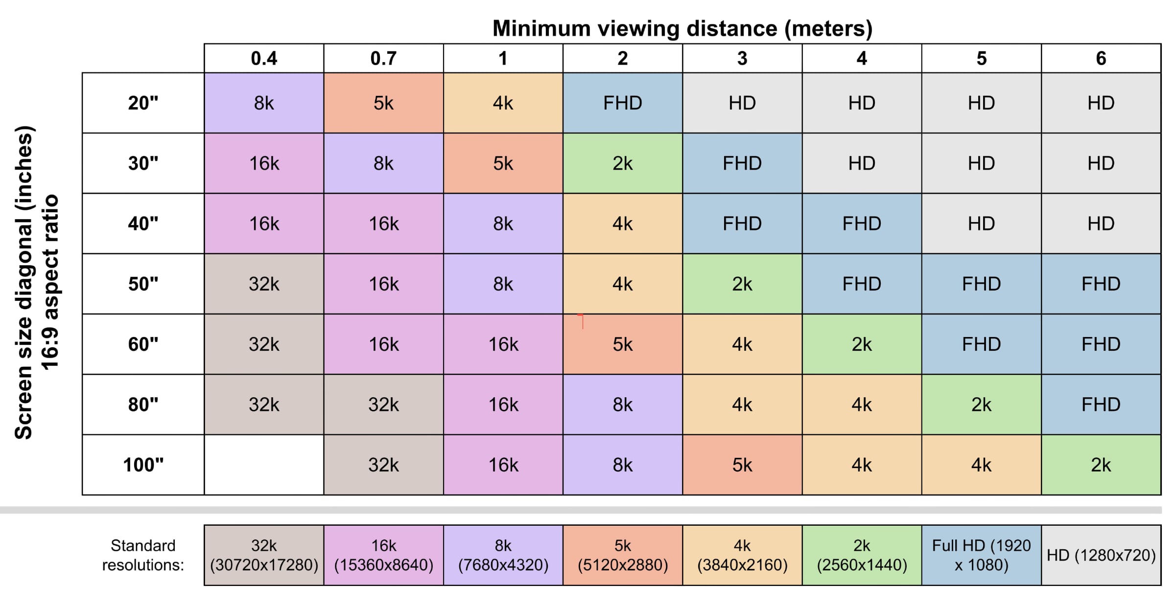 For at opsummere resultaterne har forskerne lavet en beregner for skærmopløsning og offentliggjort et tilhørende diagram (se nedenfor).