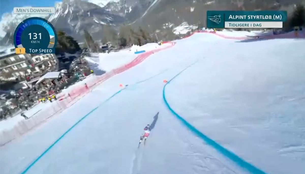 Mange seere har lagt mærke til, at skiløbere, der flyver ned ad de italienske pister med 120 kilometer i timen på ski eller snowboard, tæt følges af kameraet. Seerne i sofaen oplever, at de nærmest flyver med ned ad pisten.