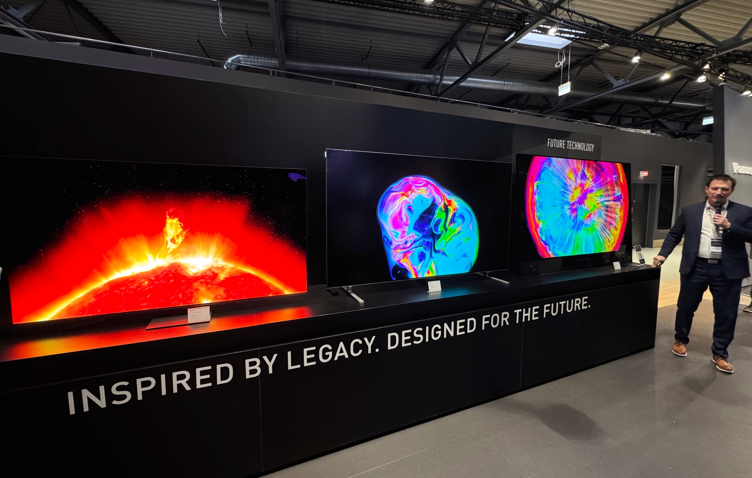 Panasonic fremviste TV-koncepter. Venstre: OLED med det nyeste Tandem WOLED-panel. Midten: RGB miniLED LCD prototype med 10000+ zoner. Højre: OLED TV designkoncept. Foto: Flatpanels