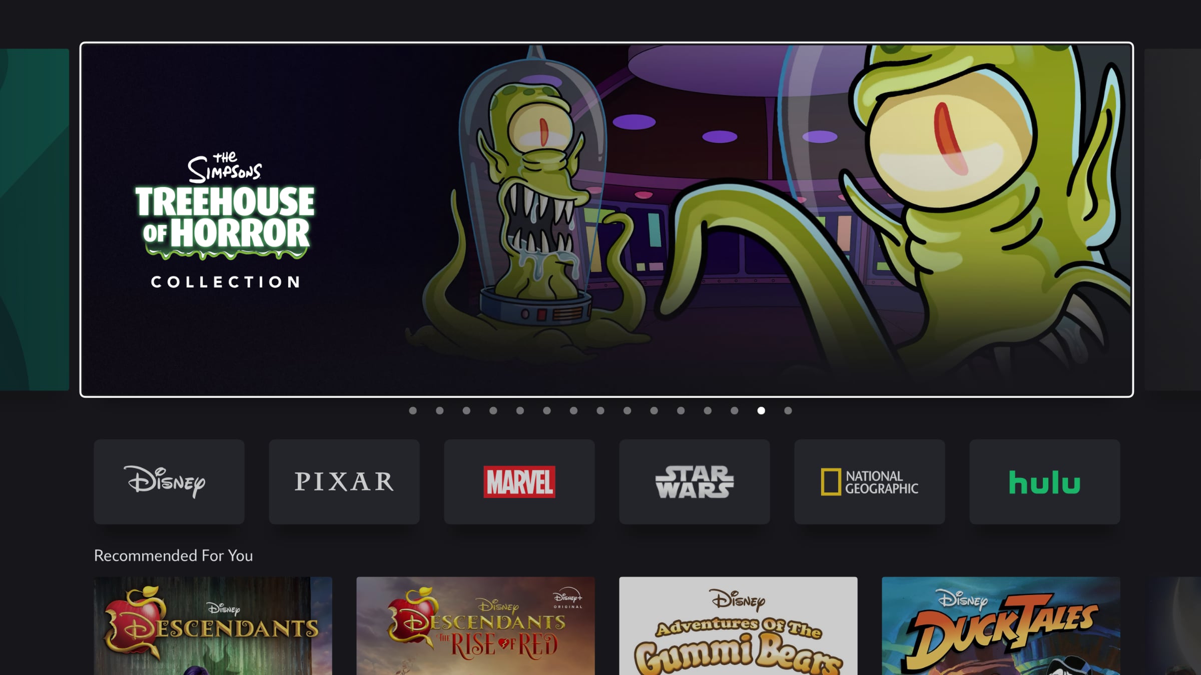 Brugerfladen skifter til en topmenu med en 'For You'-sektion, hvori der serveres mere personlige anbefalinger til hver bruger. Brugerprofiler bliver mere prominente i brugerfladen, som samtidig mere visuelt og dynamisk, ifølge Disney. Der afspilles video i karrusellen øverst.