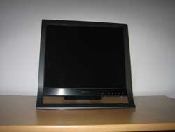 Skærmen har en metalfod bagpå, hvor der sidder en lille rulleskive fastmonteret. Når skærmen skal tiltes kræves det et let skub på rammen af skærmen idet foden bagpå er tilstrækkelig stram. Det føles flydende og er på ingen måde besværligt.