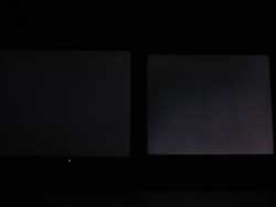 Det er også denne kombination, som giver det uheldige fænomen, som er det store problem med X-black, nemlig refleksioner. Når mørke billeder fremvises kan man tydeligt se sig selv og det fremhæves endnu mere når man sidder i et mørkt rum eller hvis der falder lys direkte på monitoren.