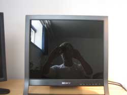 Du kan se et billede herunder, hvor lyset fra vinduet reflekteres i skærmen.
