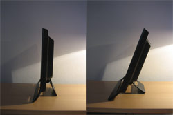 Det var dog ikke så slemt i praksis, at man ikke kunne se film, men man kunne derimod godt bemærke det, hvis man sad nær skærmen og var opmærksom på det.Betragtningsvinklerne er meget dårlige. Bare man sætter sig lidt ned i stolen ændrer de sig i forhold til sin almindelige siddeposition. Det var tydeligt på billederne med gradienterne, men det er endnu mere tydeligt i andre situationer.