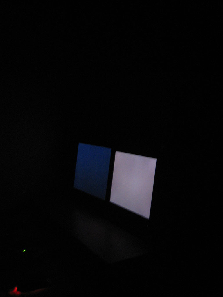 Fra siderne bliver farverne forvrænget, men kontrasttabet er det man hurtigst bemærker. Sort får det lyse skær, mens hvid bliver mørkere og blå bliver gråligt.
