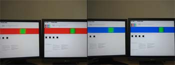 Der var specielt problemer i den røde og grønne gradient, som der er påvist ovenfor - igen størst ved den analoge forbindelse trods indstilling.Udover kritikpunkterne med farverne skal det dog lige siges, at skærmen er i stand til at genproducere et fin hvid og sort og f.eks. en nogenlunde intens grøn, blå og rød. Den har blot problemer med at skelne mellem de tætliggende nuancer.