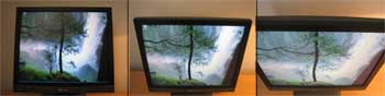 Se billeder nedenfor:Skærmen mister for hurtigt farveintensiteten ved filmfremvisning og det er derfor ikke muligt at sidde i en vinkel, hvert fald ikke hvis man vil have den optimale oplevelse.