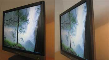 De vertikale er gode, men de horisontale er ikke sufficiente nok. Hvid bliver en smule gullig, men det mest bemærkelsesværdige er, at farverne mister intensiteten, selv fra mindre vinkler. Kraftig grøn bliver eksempelvis lysegrøn.