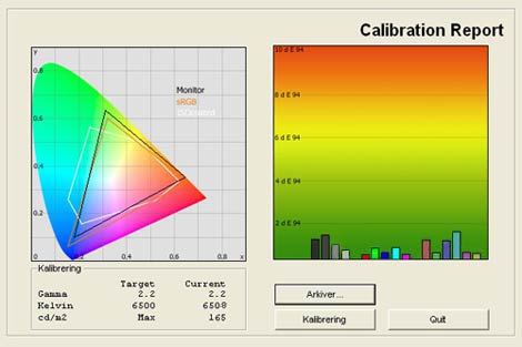 Det der godt kan forekomme er nemlig, at skærmen kan have lidt problemer med at skelne meget tætliggende nuancer fra hinanden. Nu måles hver enkel farve af de 16.7 millioner jo ikke. Det kan f.eks. give udtryk i, at flydende gradienter ikke er fuldstændig flydende. Trods det er det dog ABC for skærmens billede. Hvis farverne, eller for at sige det på en anden måde, hvis deltaværdierne for farverne er gode, så vil skærmen være godt egnet til grafisk brug. Hvis de ikke er lave, så er den nok ikke egnet til det henseende, men nok tilstrækkelig til mange prisbevidste, standard brugere eller mindre krævende forbrugere